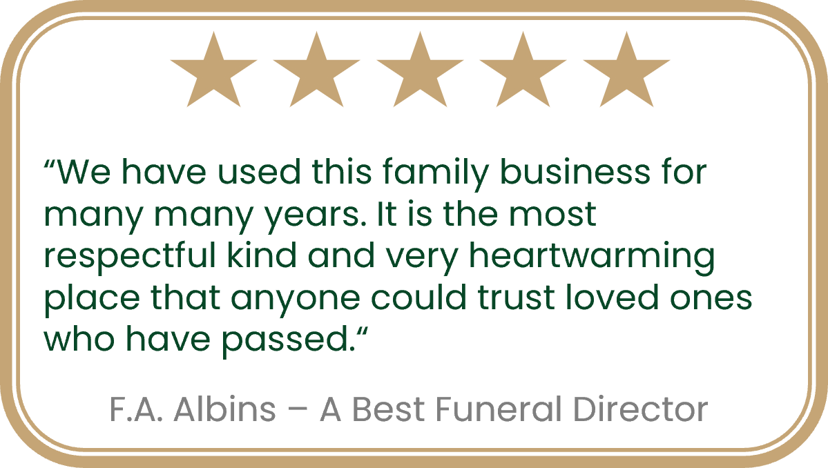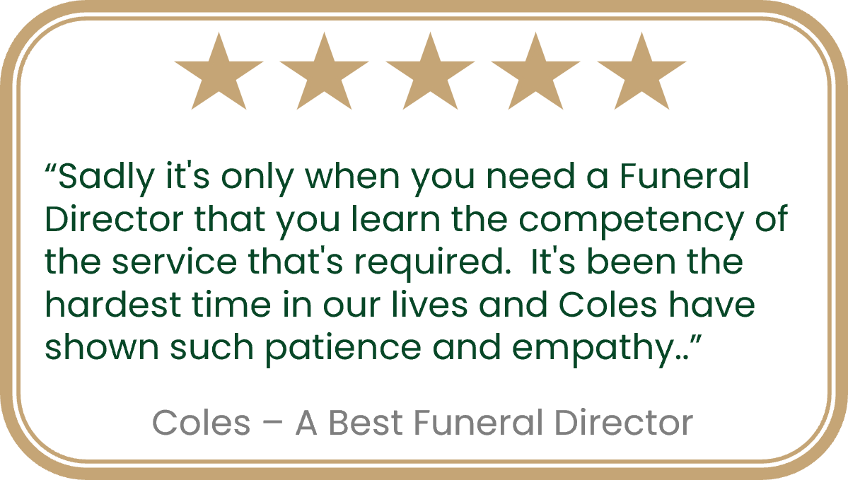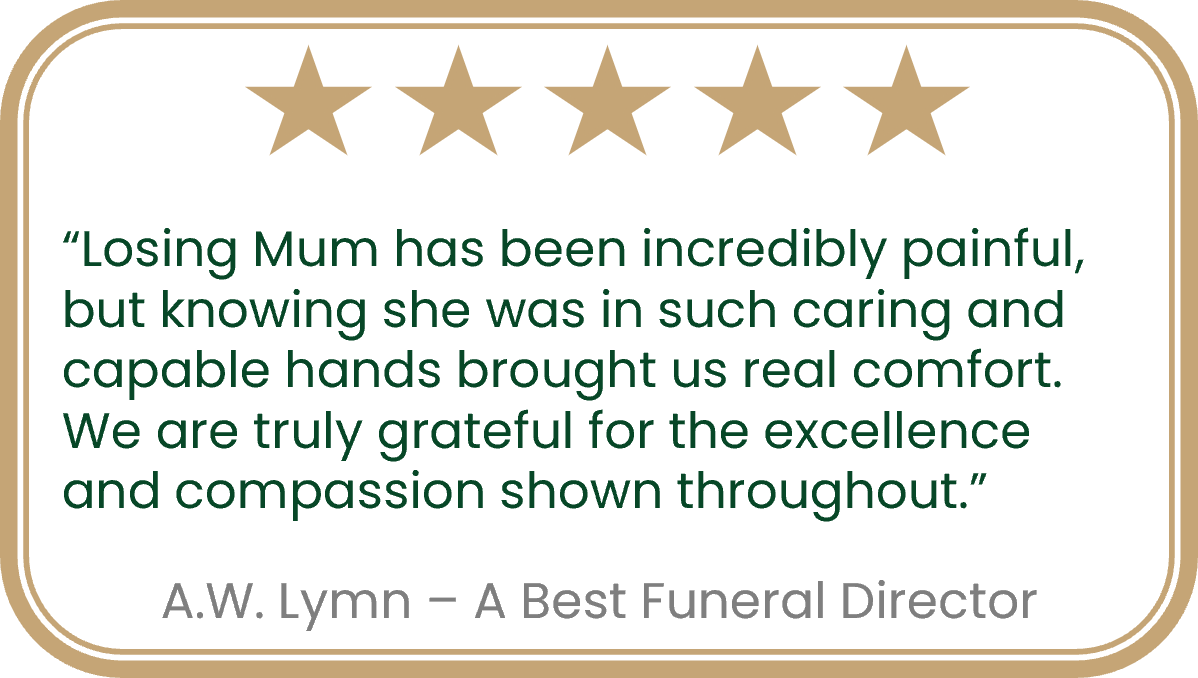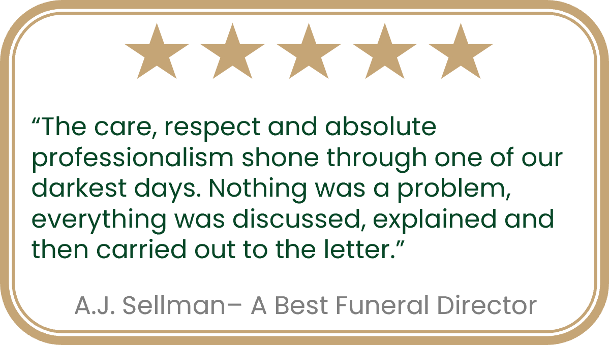 Choosing the Best Funeral Director in each area is a rigourous process, we thoroughly check their whole business, including what happens behind the scenes to ensure they meet our highest standards – so you can feel confident and know you’re in great care.